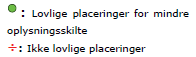 - Oplysningsfeltet skal fremstå med et enkelt og letlæseligt budskab (oplysningsformål) og kan oplyse om særlige og midlertidige arrangementer og begivenheder af almen og væsentlig interesse og ikke-kommerciel karakter2 som for eksempel byfester, festivaler og større sports- og kulturarrangementer.