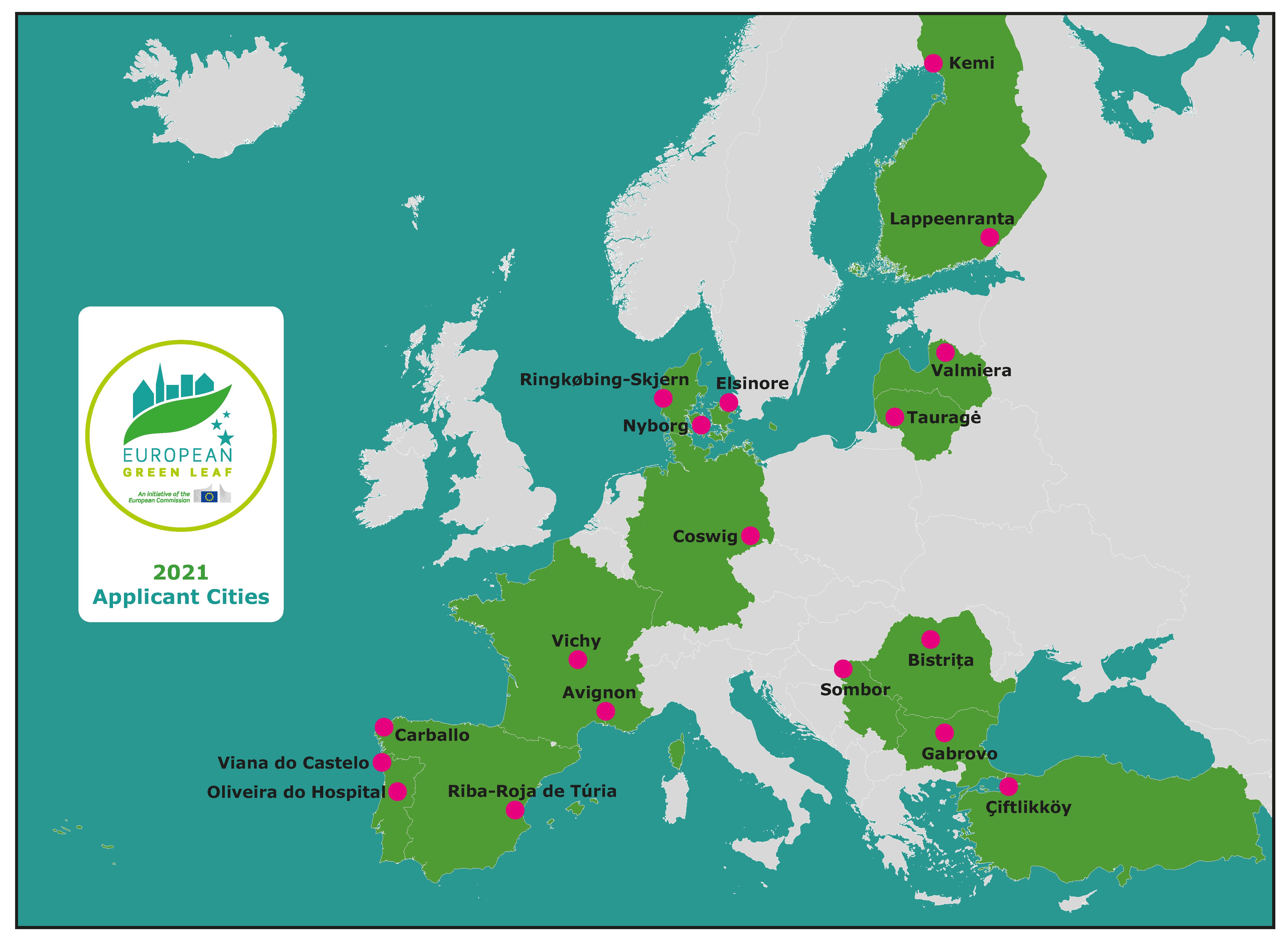 Den europæiske Green Leaf-pris uddeles hvert år til en by eller en kommune med 20.000-100.000 indbyggere.